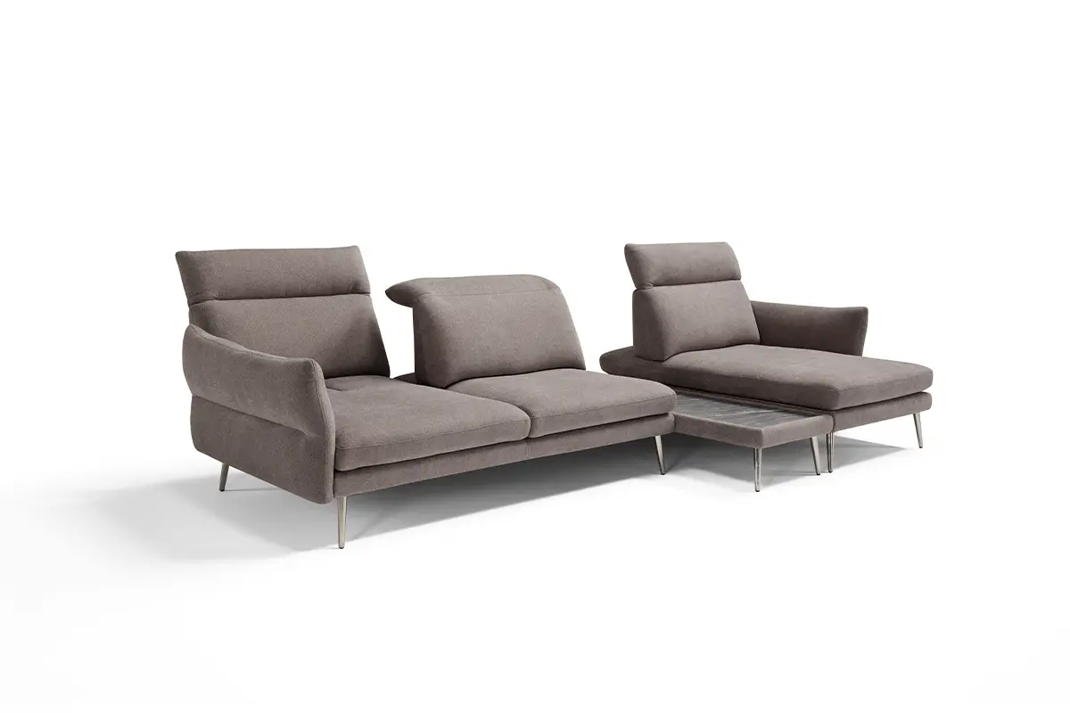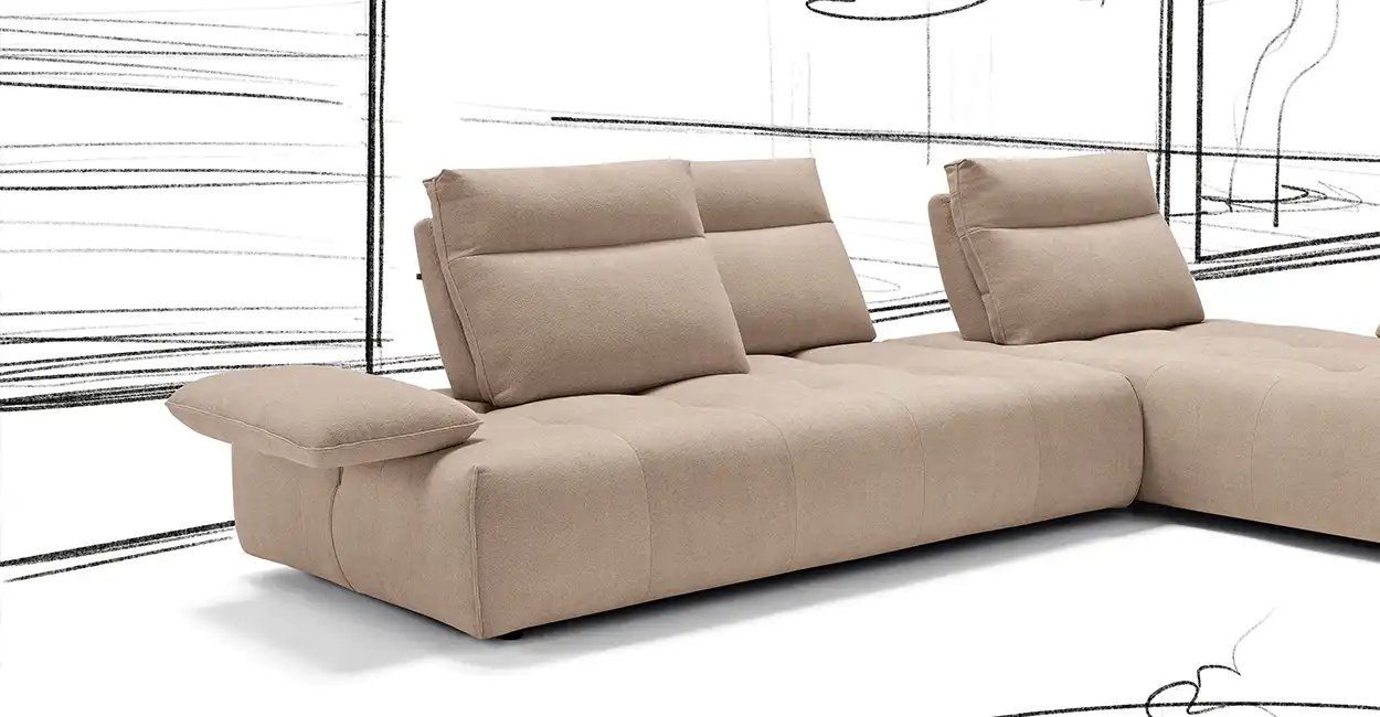 Un divano modulare che offre molteplici combinazioni di elementi e rivestimenti.