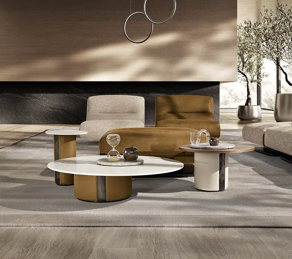 Tavolini dalla combinazione ideale di forme e materiali.