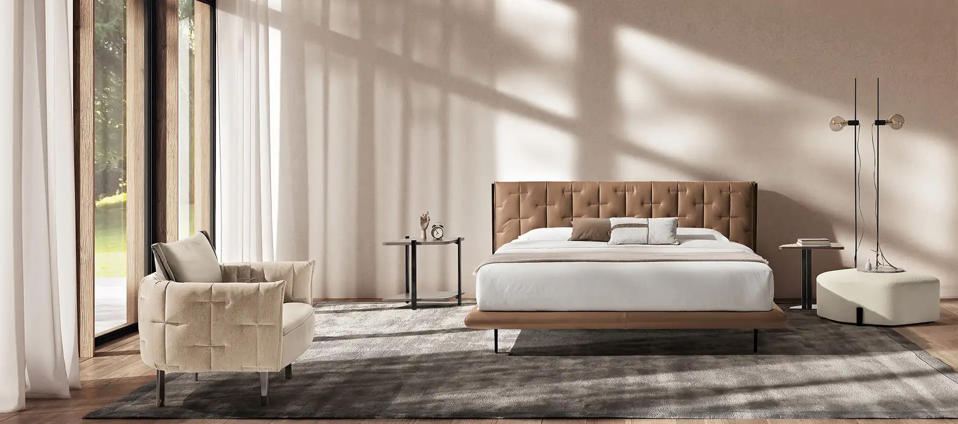 Muzzle interpreta il letto matrimoniale con un equilibrio tra funzione e ricerca estetica.