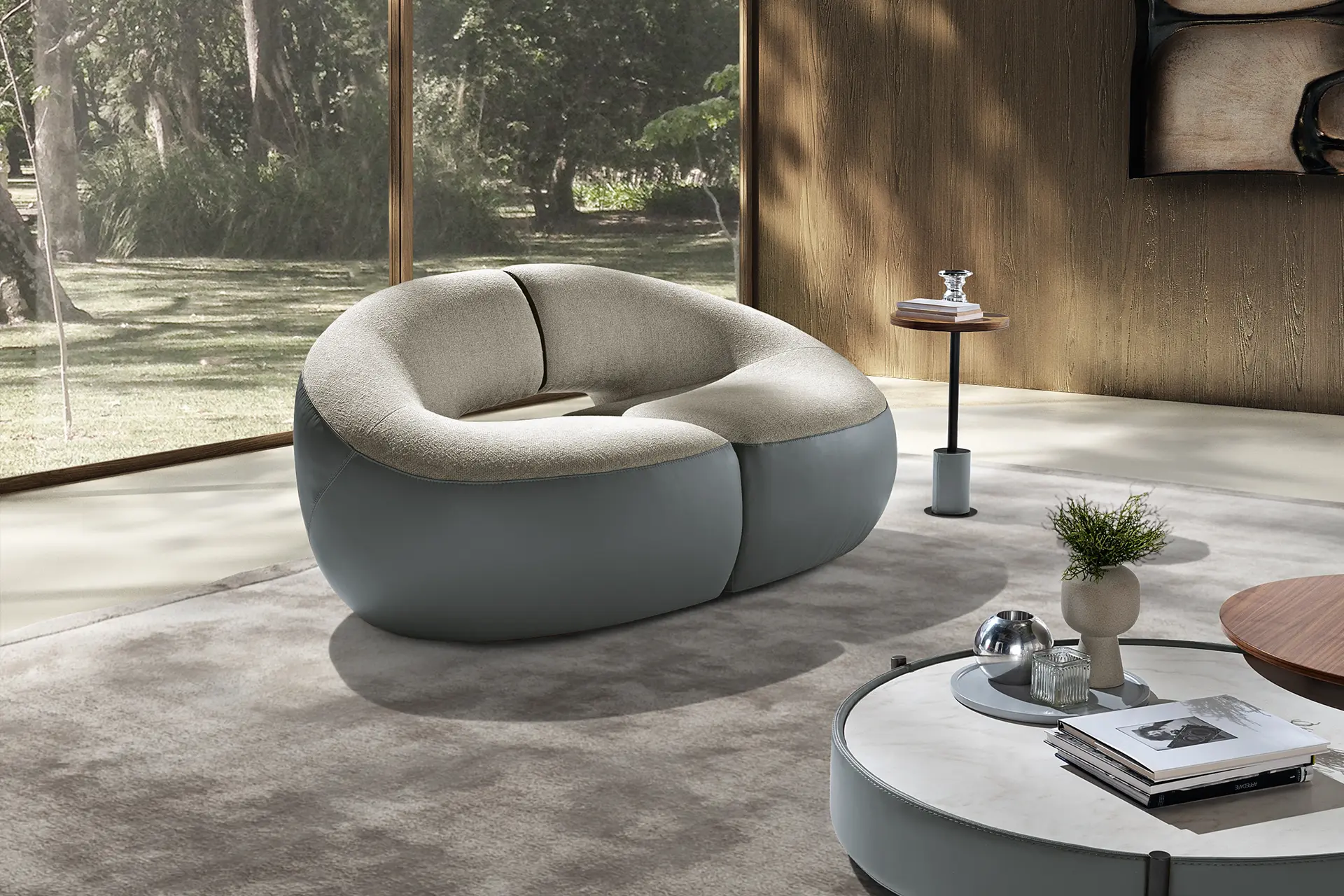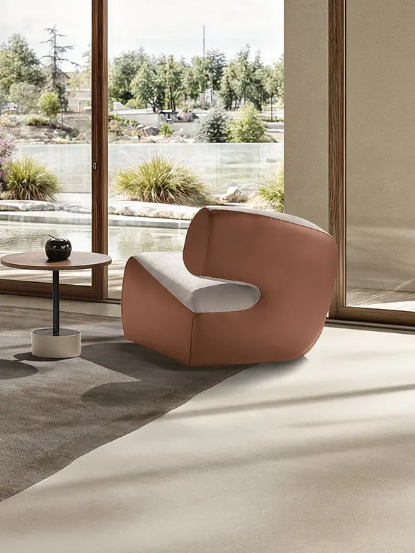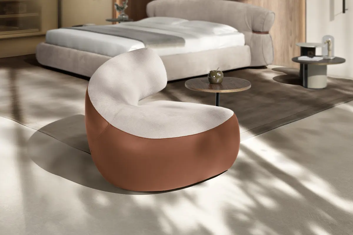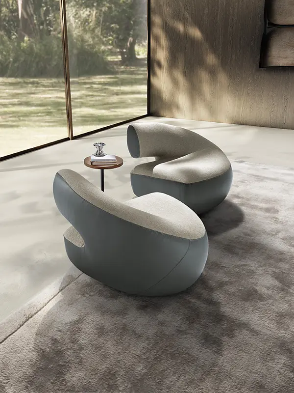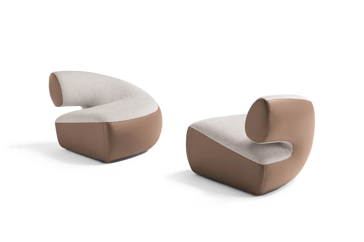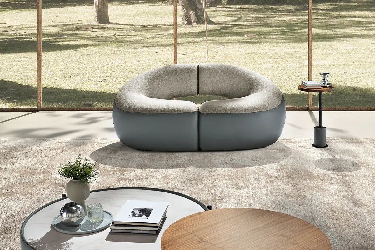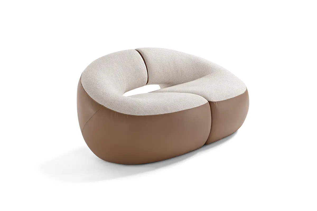 Abbracci is a stand-alone piece or an original two-seater sofa. The slightly rounded backrest envelops the seat like a tender embrace, offering a cuddle and a moment of relax.