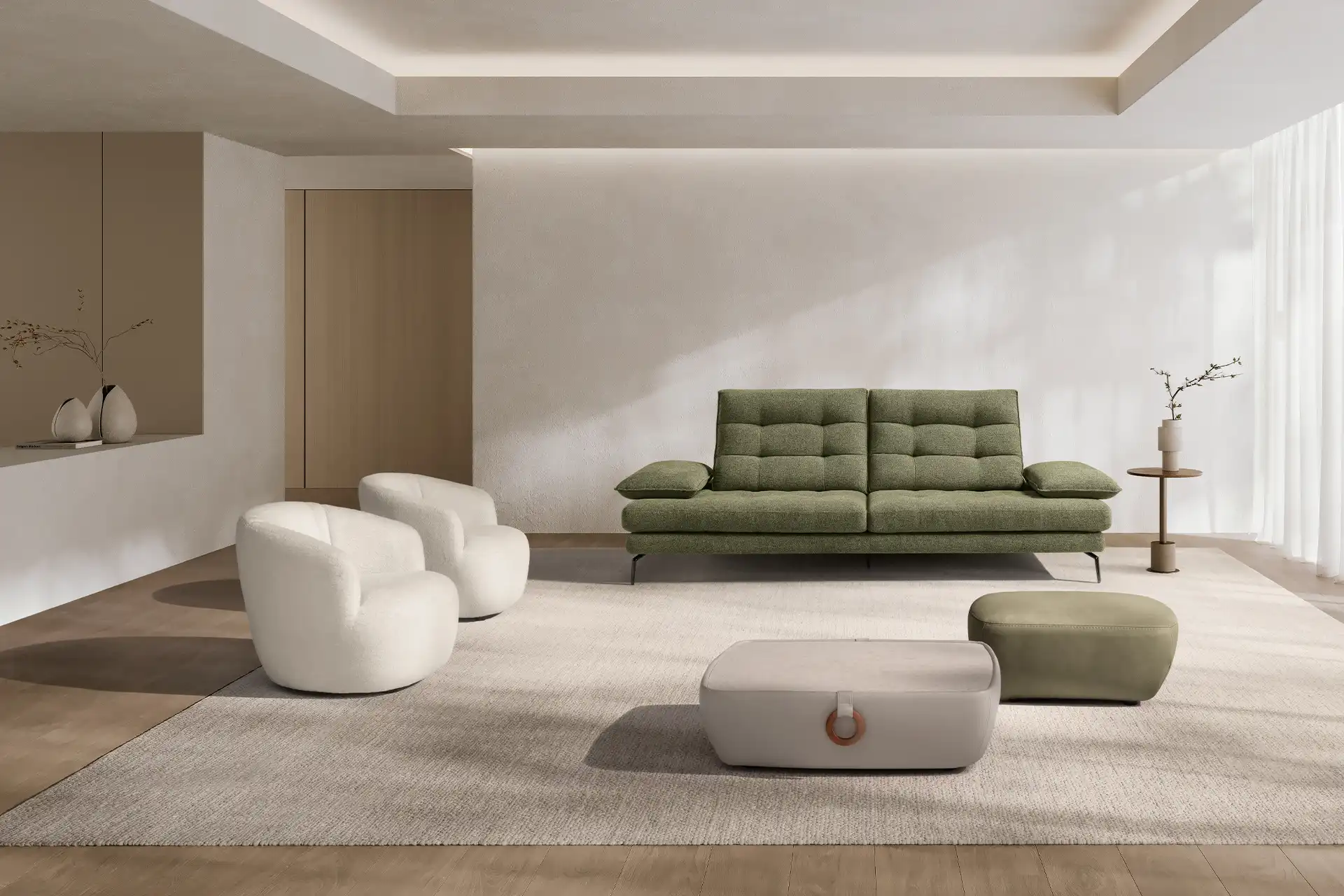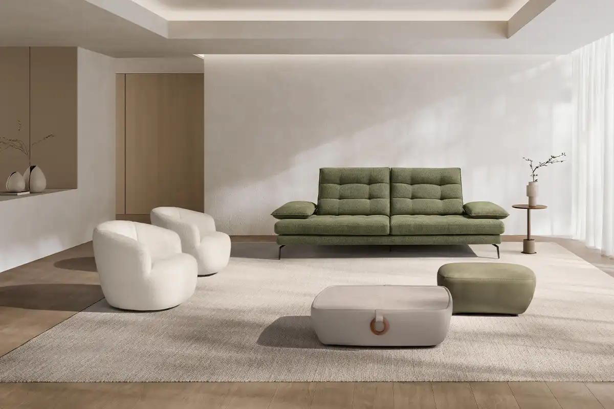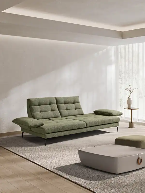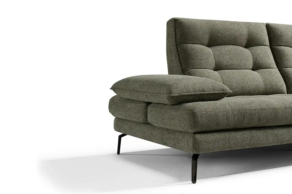 Un divano tre posti “maxi”, caratterizzato da un design ergonomico e da una linea inconfondibile, con 4 meccanismi traslanti su spalliera e braccioli, che creano varie configurazioni ridisegnandolo di continuo. Una sua caratteristica è sicuramente la trapuntatura a quadrotte sia sulla spalliera che sulla seduta, che ne impreziosisce l’immagine. Altro dettaglio particolarissimo è il bracciolo, che ha una sagoma a effetto guanciale con una cucitura pizzicata. I piedini singoli leggermente sagomati, ruotati a 45 gradi, gli donano slancio, leggerezza e anche un ulteriore tocco di eleganza.