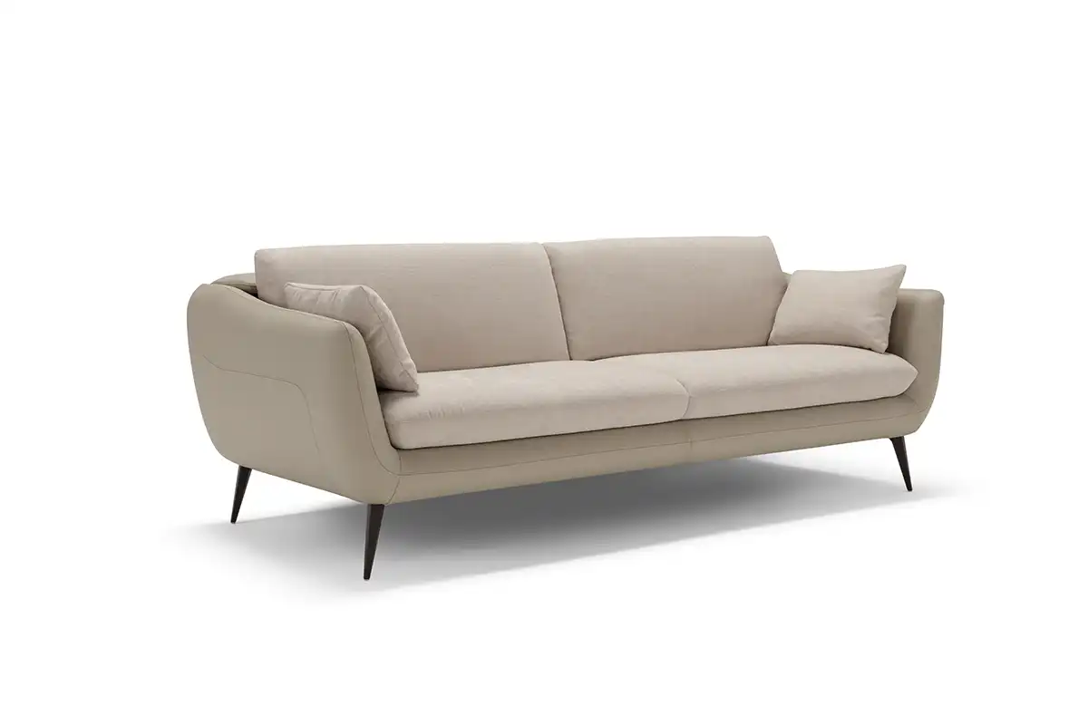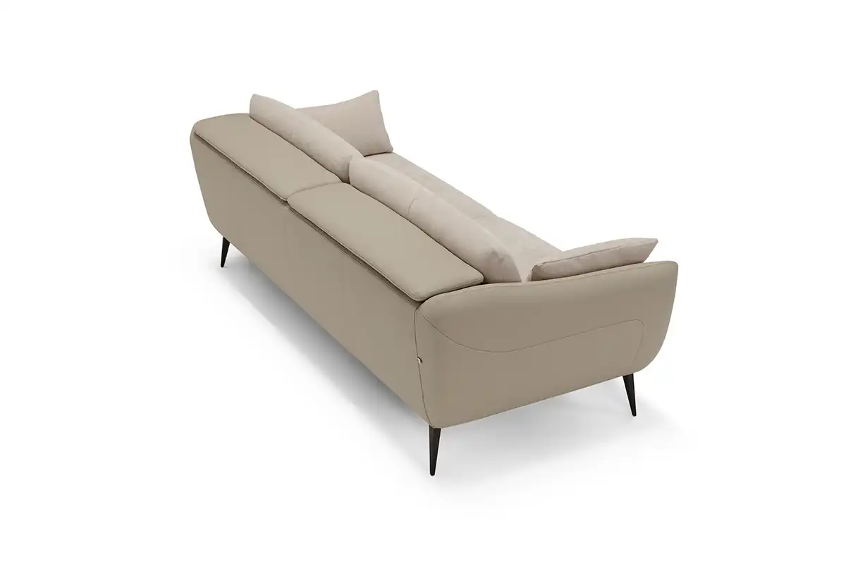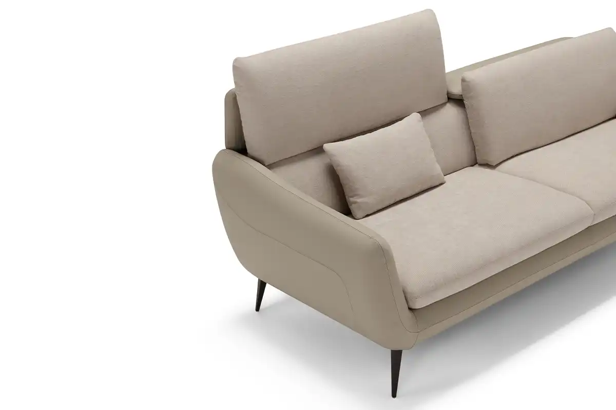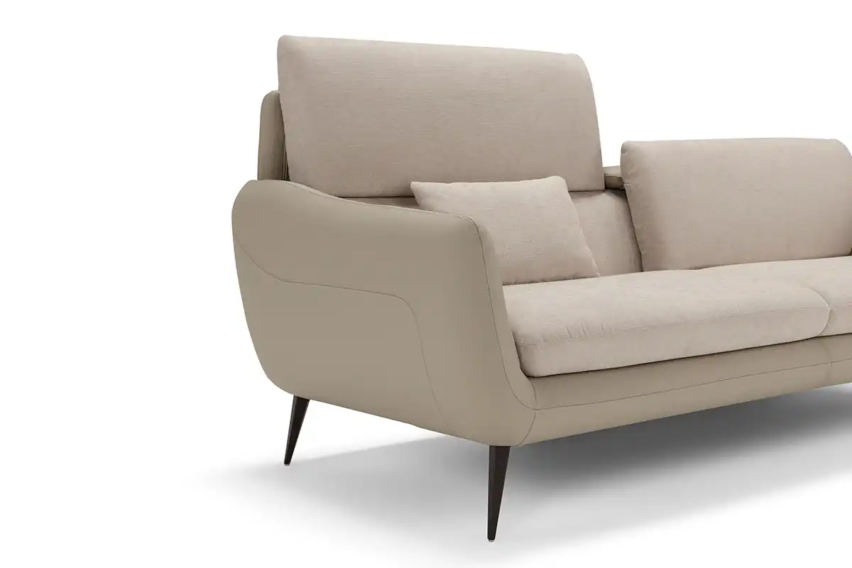 Sintesi al contempo di comfort e di un’eleganza rigorosa, l’ampio divano tre posti Core è definito da una solida struttura rivestita in pelle, all’interno della quale sono alloggiate le parti imbottite, foderate in tessuto della stessa nuance. Configurabile in un’ampia gamma di composizioni che vanno ad assecondare ogni esigenza di spazio, Core non perde di vista la dimensione del relax: ad ogni singola seduta abbiamo integrato un movimento di traslazione verticale per consentire un aumento dell’altezza della spalliera, che così diventa anche poggiatesta. Lo abbiamo inoltre dotato di soffici cuscini movibili, da usare come braccioli o, all’occorrenza, come poggiareni. A sollevarlo da terra, conferendogli una complessiva leggerezza, piedini sfaccettati in metallo verniciato
