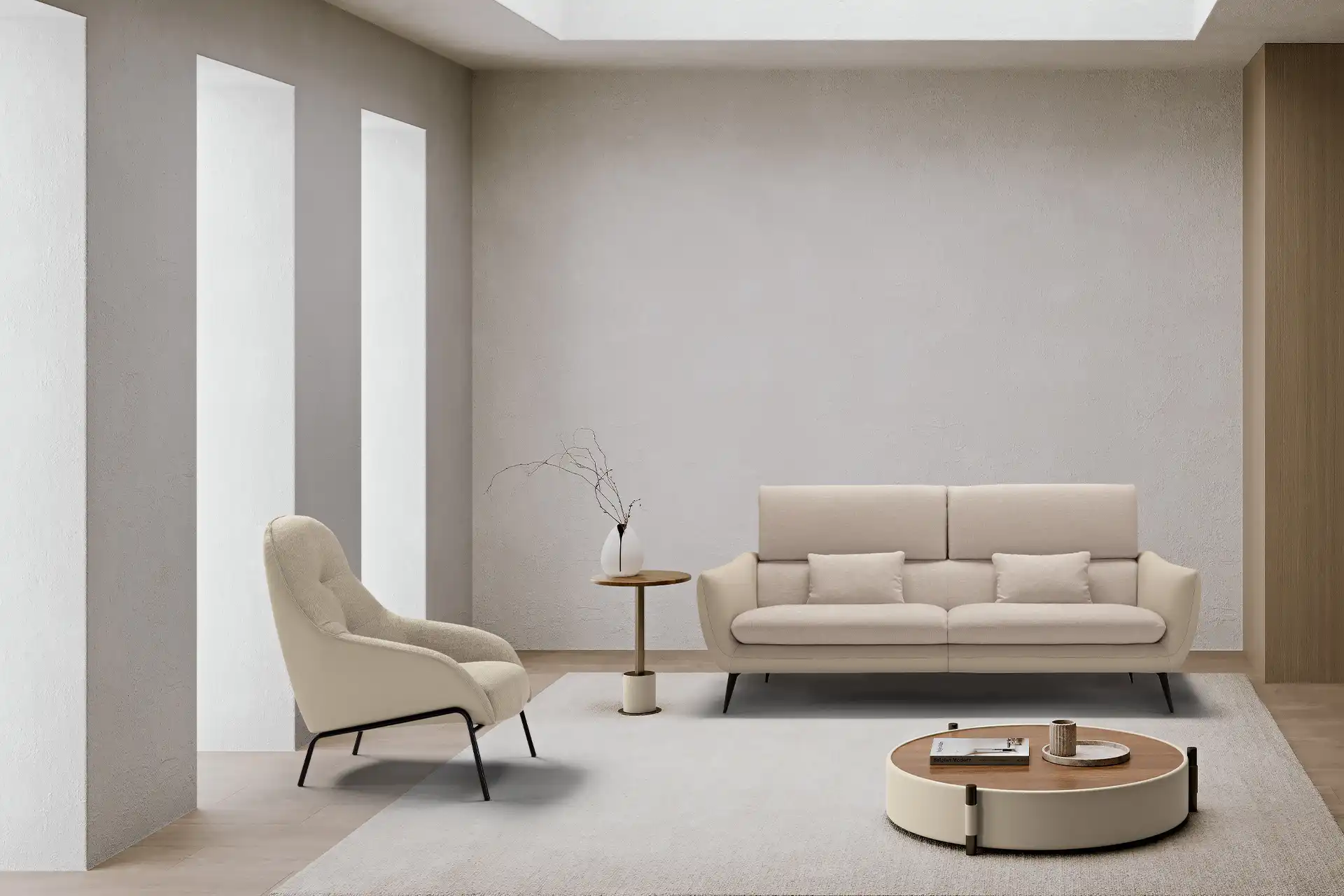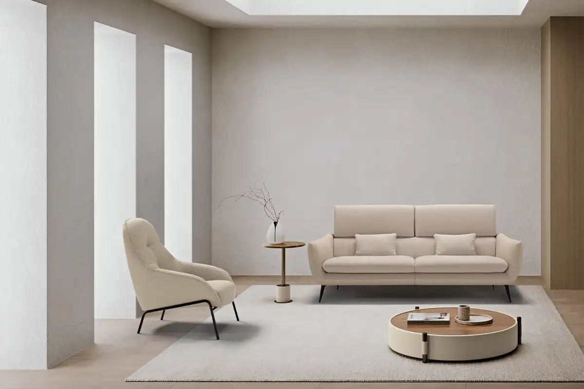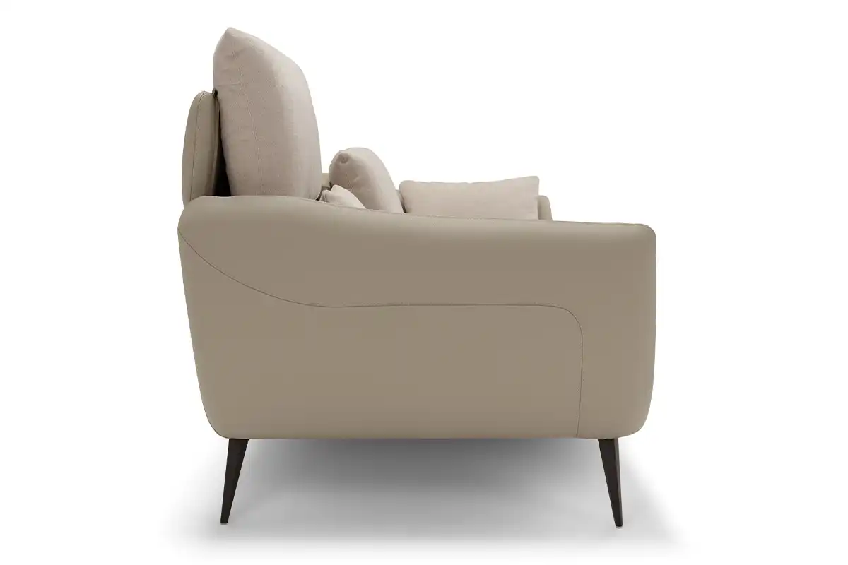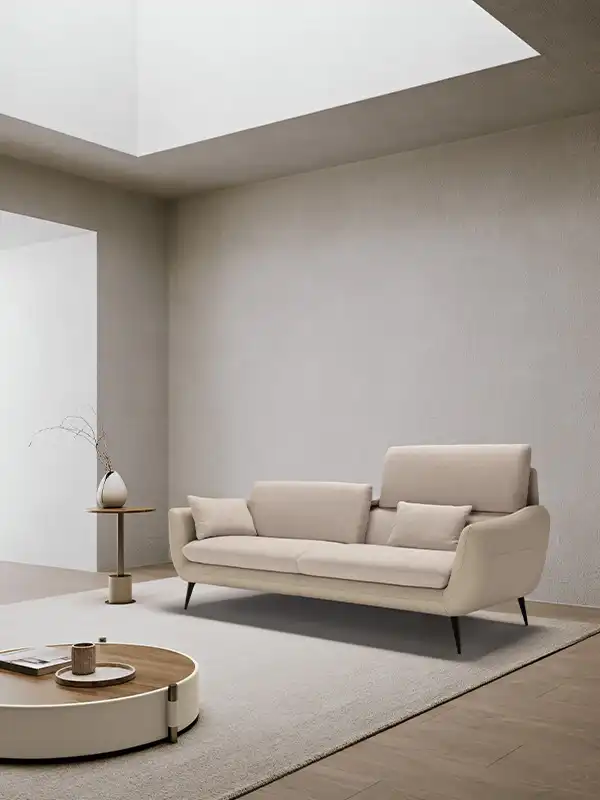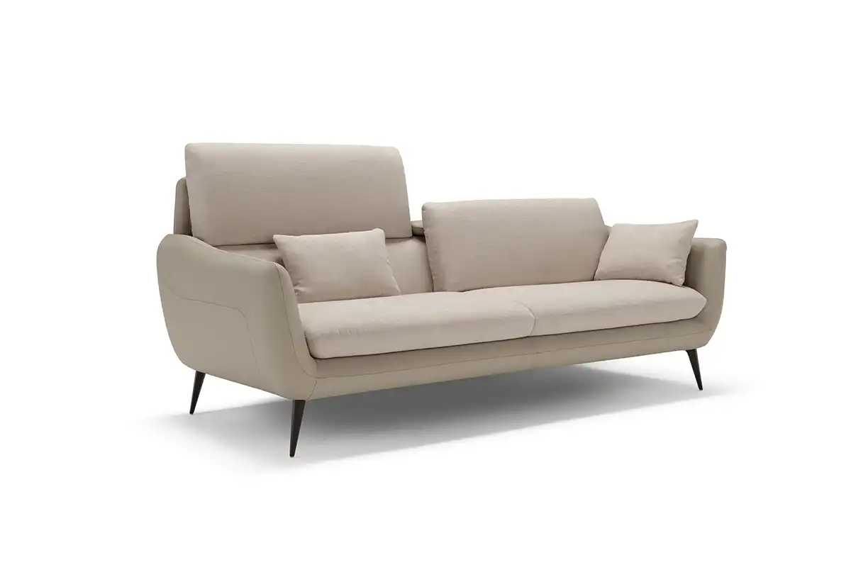 Sintesi al contempo di comfort e di un’eleganza rigorosa, l’ampio divano tre posti Core è definito da una solida struttura rivestita in pelle, all’interno della quale sono alloggiate le parti imbottite, foderate in tessuto della stessa nuance. Configurabile in un’ampia gamma di composizioni che vanno ad assecondare ogni esigenza di spazio, Core non perde di vista la dimensione del relax: ad ogni singola seduta abbiamo integrato un movimento di traslazione verticale per consentire un aumento dell’altezza della spalliera, che così diventa anche poggiatesta. Lo abbiamo inoltre dotato di soffici cuscini movibili, da usare come braccioli o, all’occorrenza, come poggiareni. A sollevarlo da terra, conferendogli una complessiva leggerezza, piedini sfaccettati in metallo verniciato