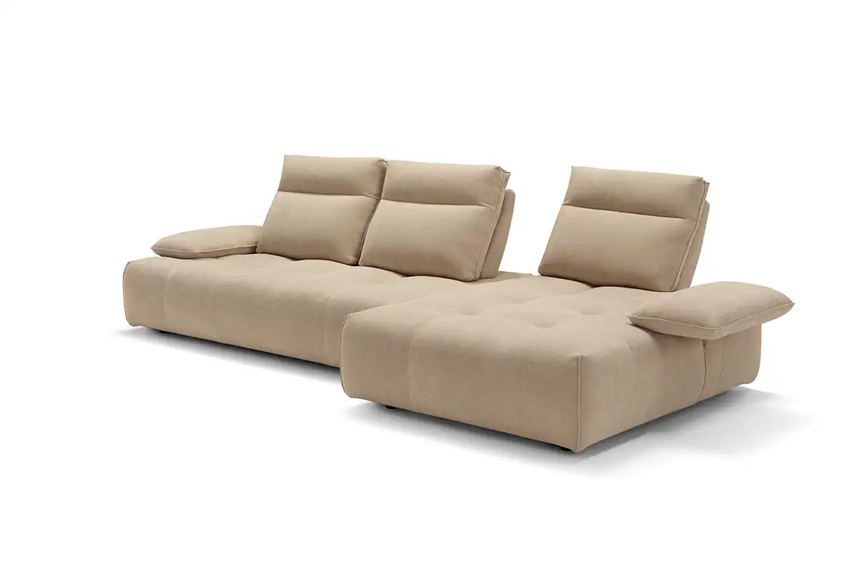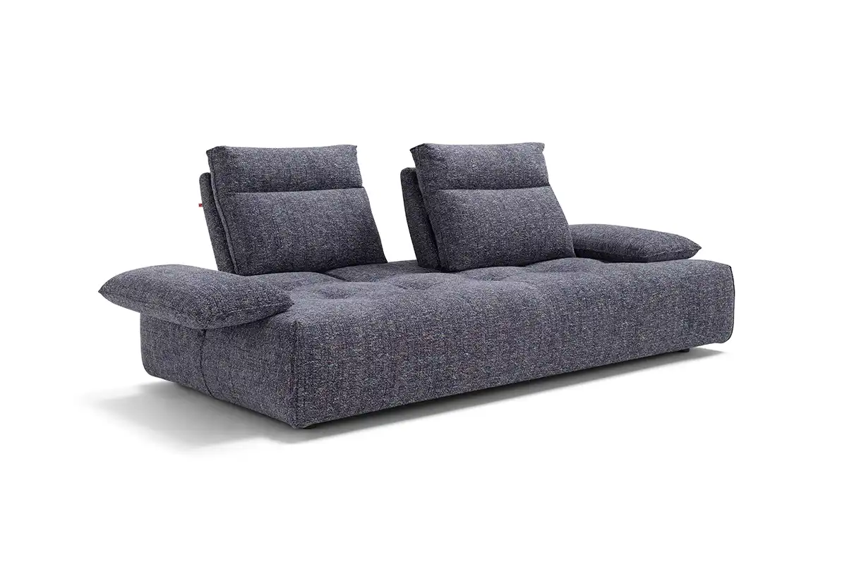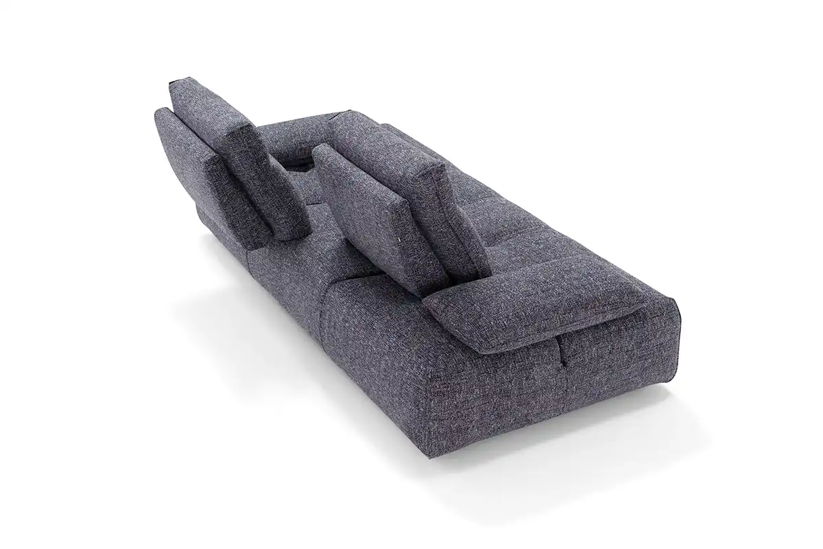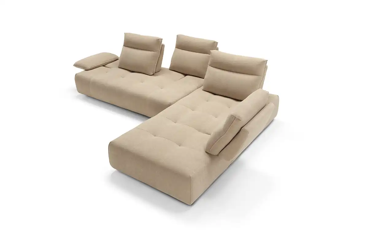Ideato per assecondare con dinamismo gli spazi e le esigenze della vita contemporanea, il divano modulare Ella, rivestito in tessuto completamente sfoderabile, è un modello che esprime personalità, versatilità e massima libertà compositiva. Partendo da un singolo modulo monoblocco, questo divano può essere infatti declinato in illimitate configurazioni, semplicemente giustapponendo ulteriori moduli rettangolari – chaise longue o penisole terminali – e pouf quadrati. Traslanti orizzontalmente sono sia i braccioli che le spalliere: questo movimento consente di variare la profondità della seduta e di avere un divano in continua evoluzione e mai uguale. La cura sartoriale delle creazioni Maxdivani si esprime infine nella lavorazione trapuntata della seduta e nella cucitura orizzontale presente sullo schienale, a definire un comodo poggiatesta nella parte superiore.