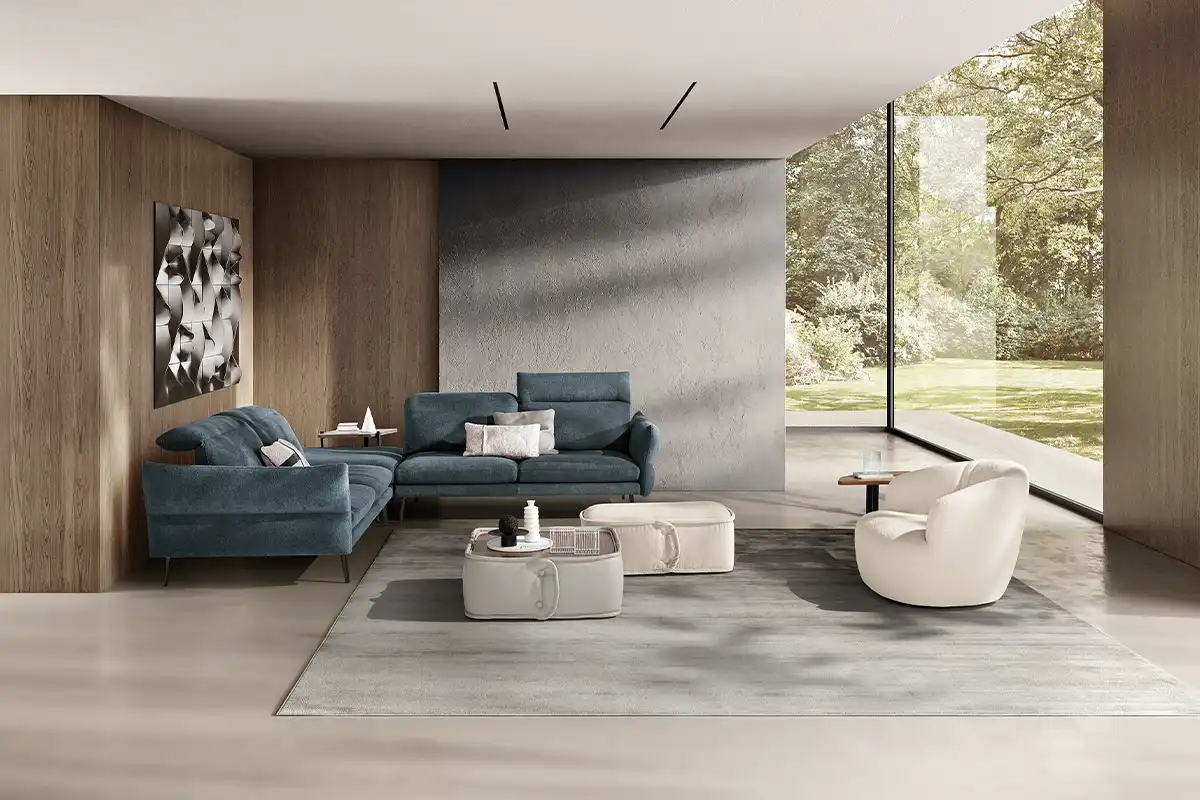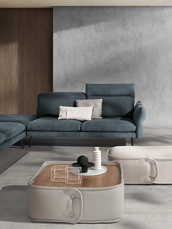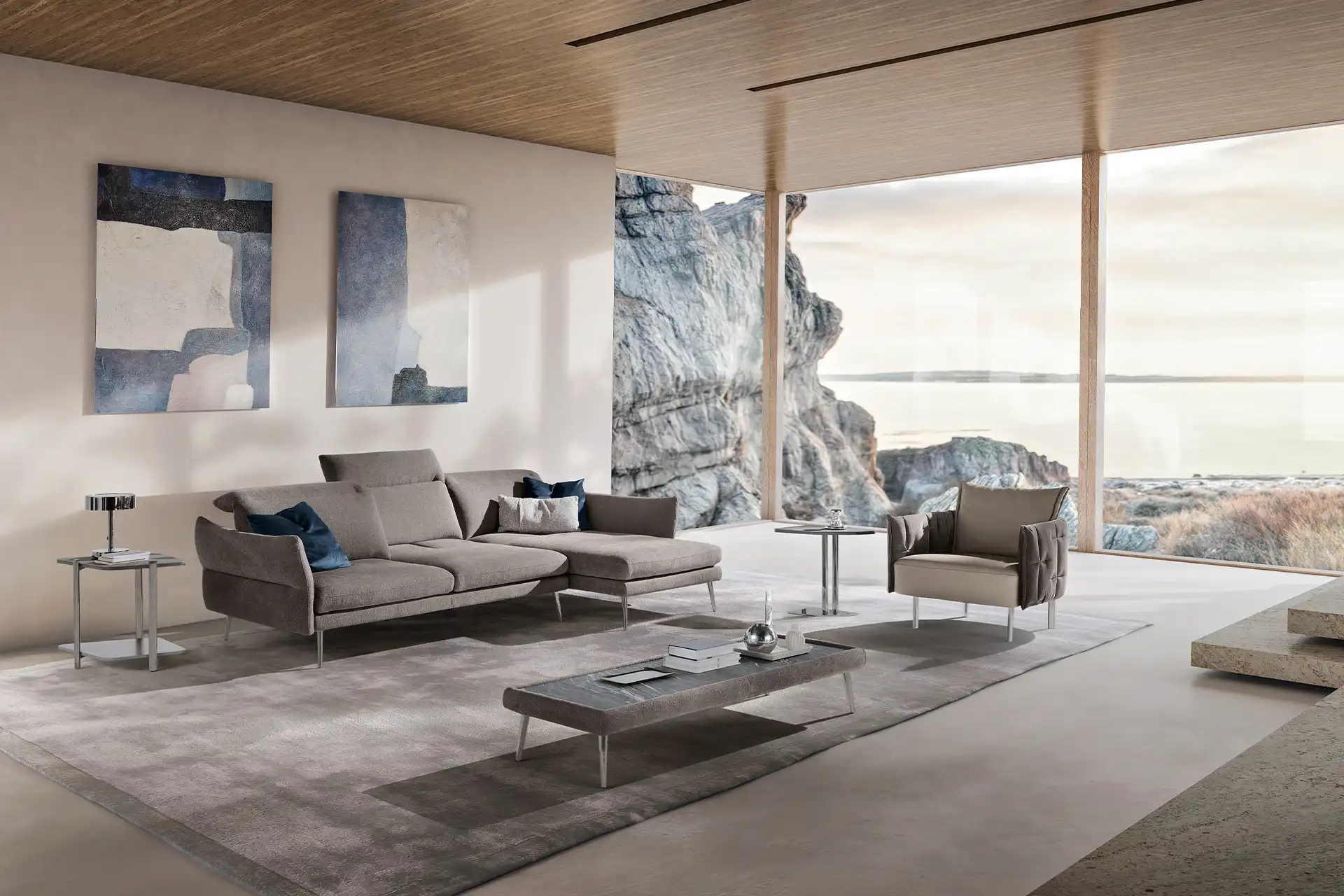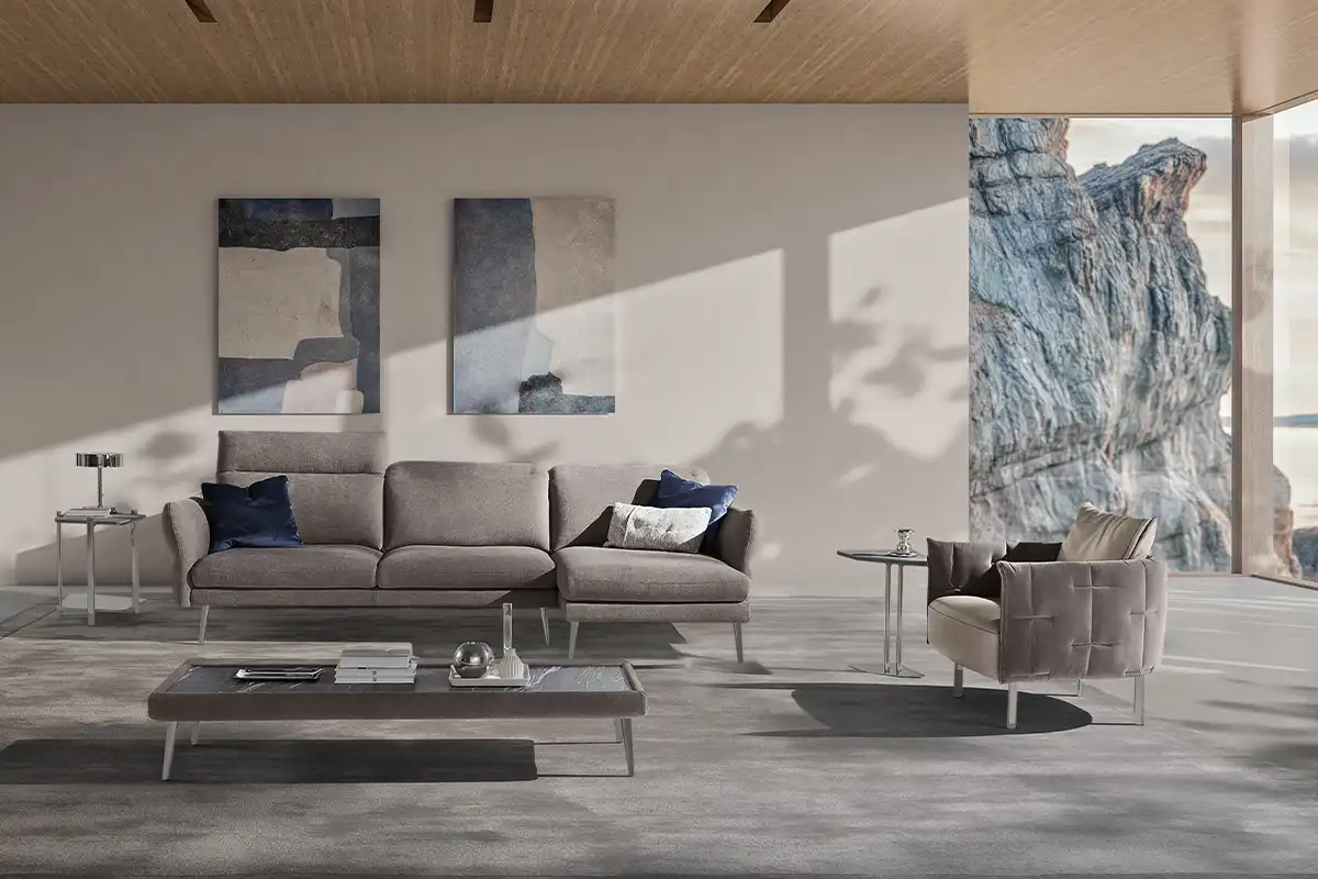 Espressione di versatilità e dinamismo, il divano Modula, è il risultato di una sapiente combinazione di versioni. Il modello si sviluppa linearmente in una armonia di differenti profondità.