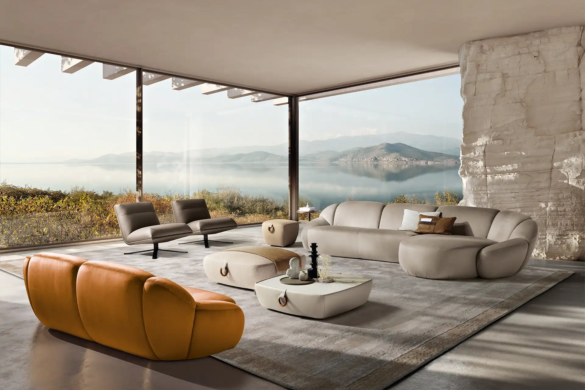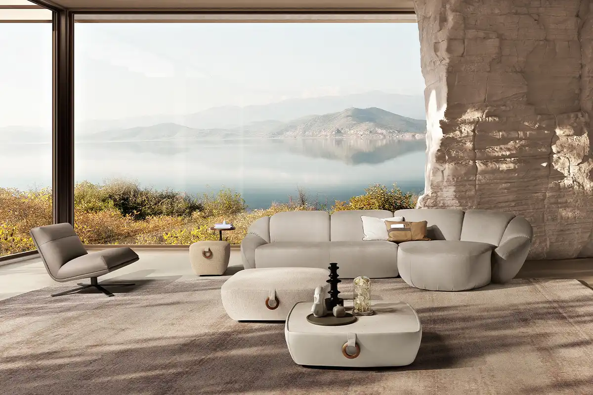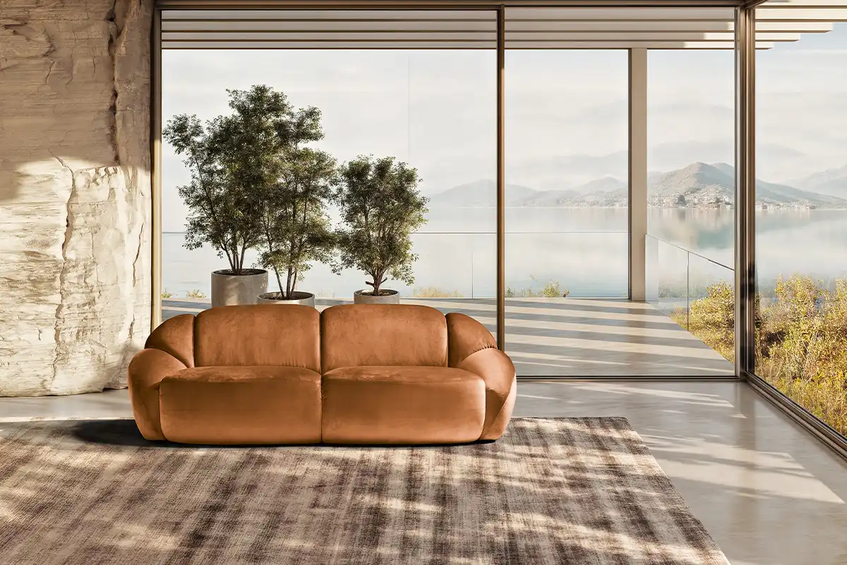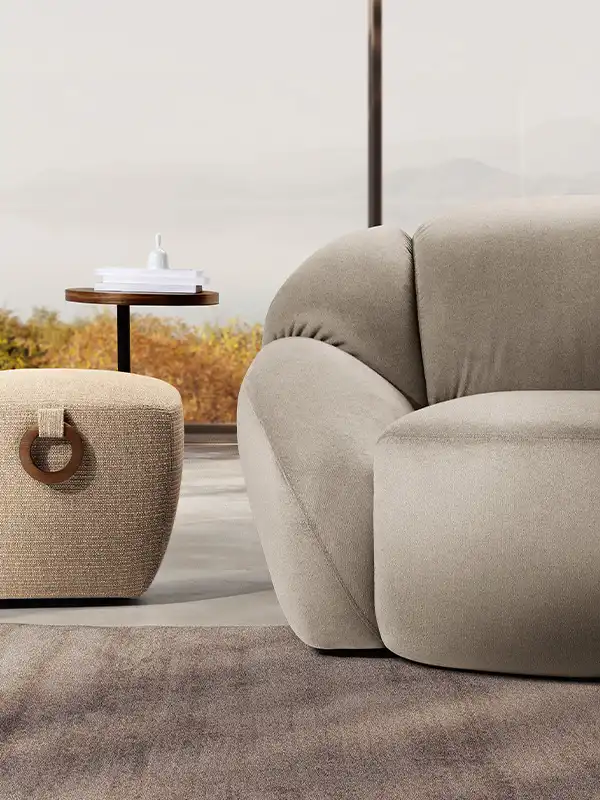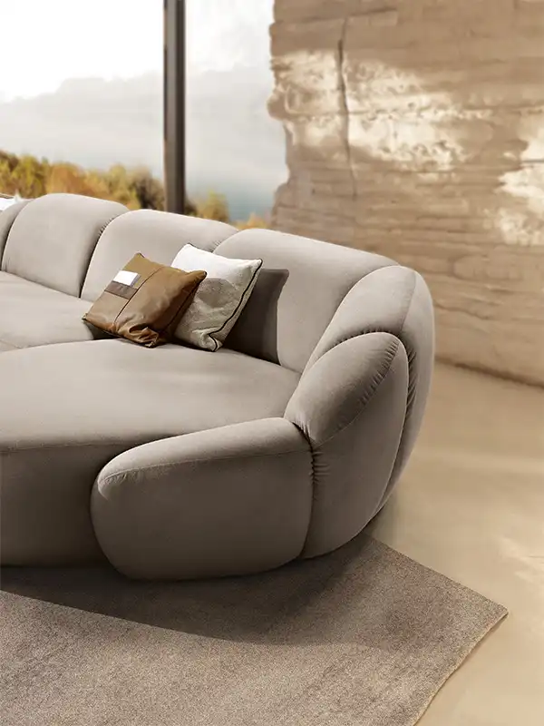 Il divano Panuma si ispira ai petali di un fiore con lo schienale e i bracciali sagomati che si aprono delicatamente a ventaglio, come una grande corolla. Un abbraccio avvolgente accentuato dalle imbottiture generose e dalla seduta, confortevole e accogliente. La cura sartoriale nella lavorazione si rivela nelle cuciture profonde in verticale che scolpiscono i volumi di schienale e braccioli, modellandoli in forme piene e morbide. Il risultato estetico è elegante e raffinato.