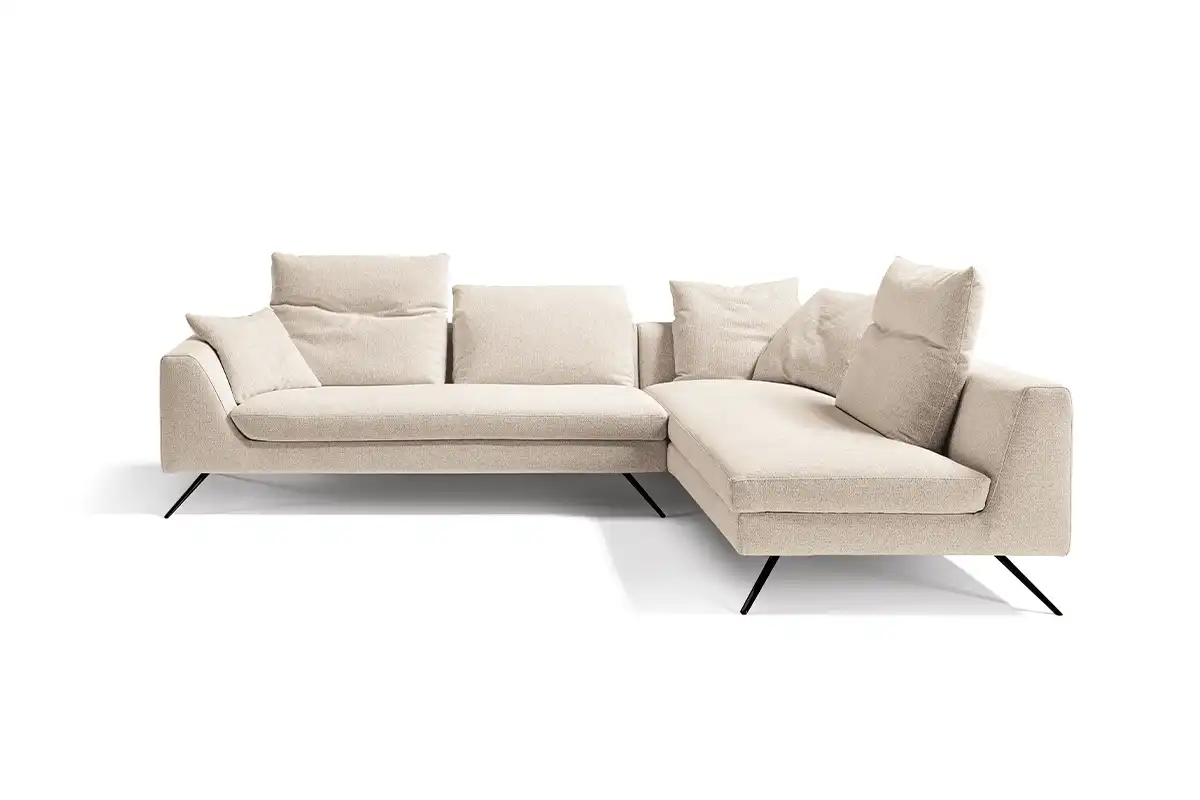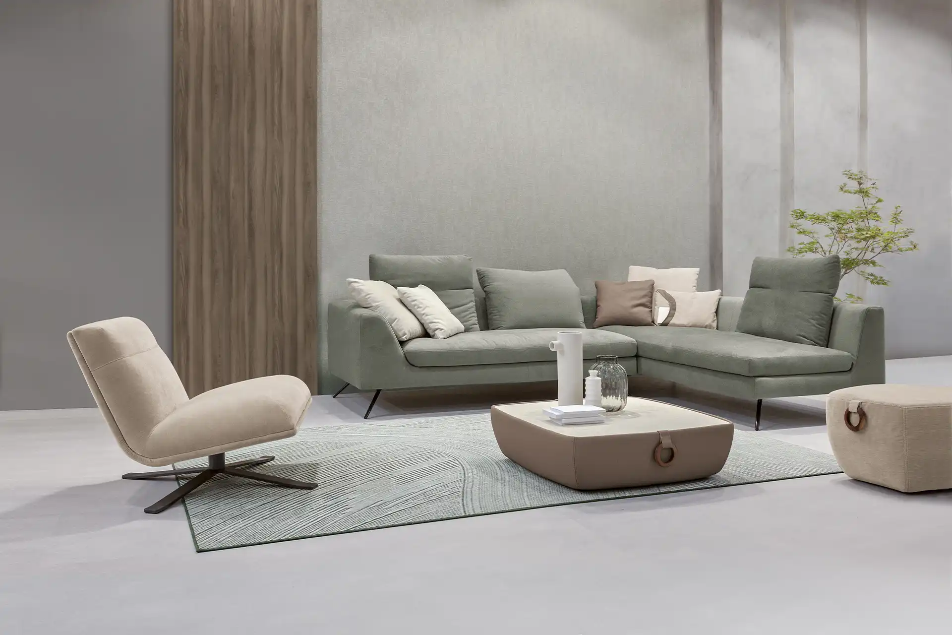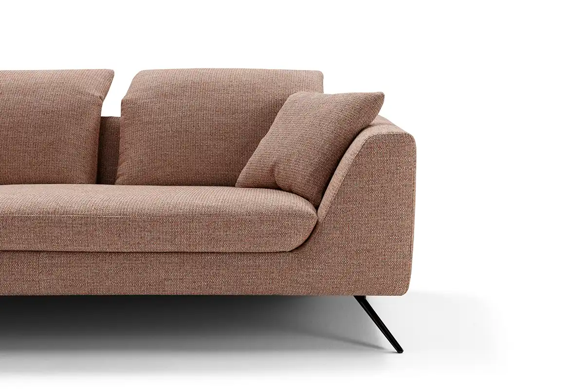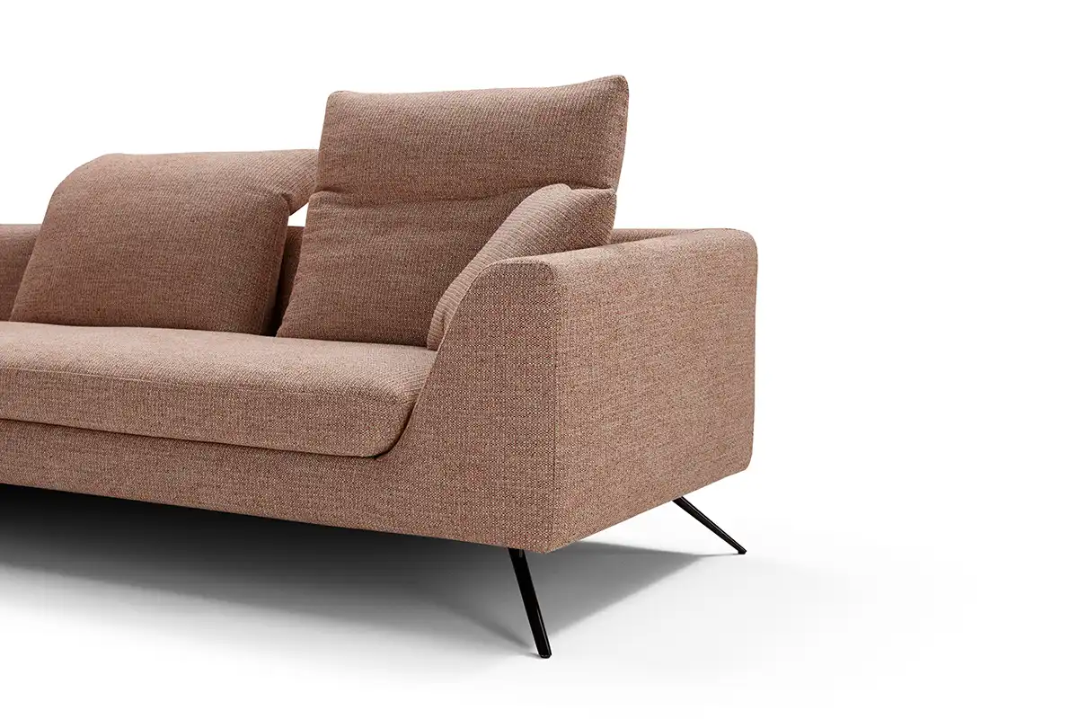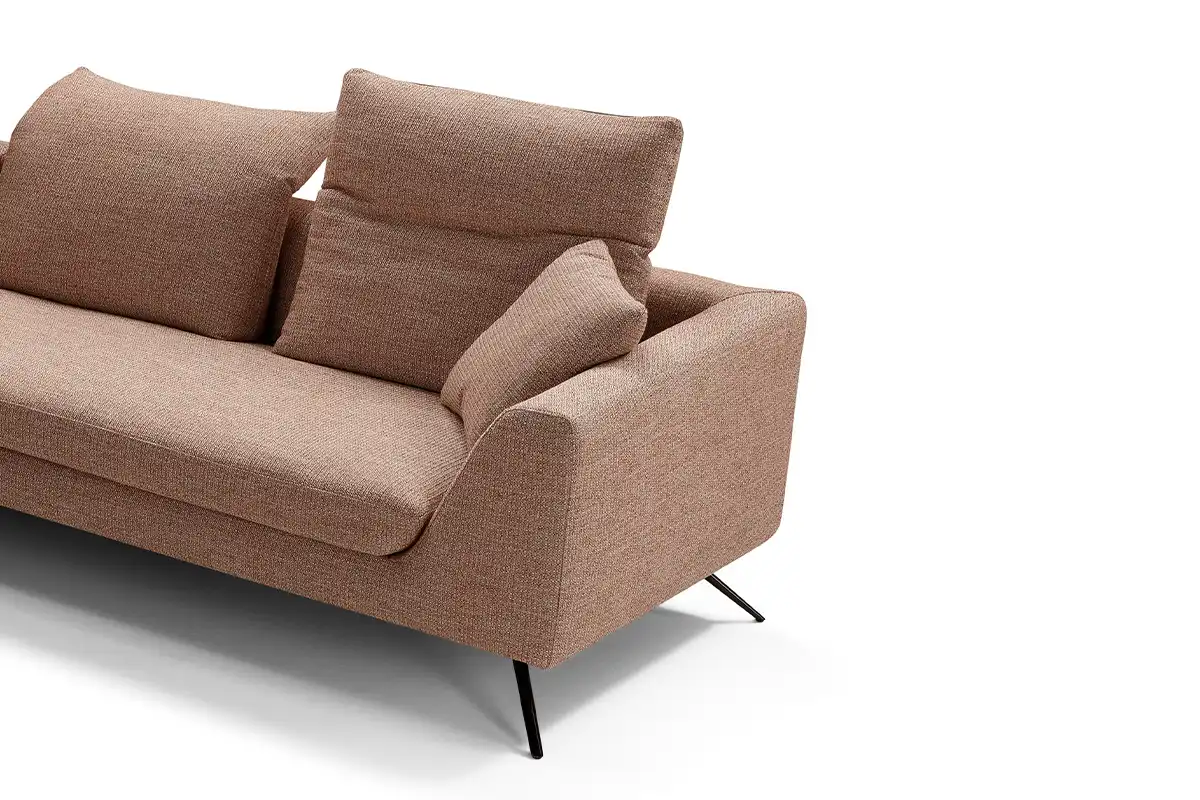 La linea di Soprano ha un design molto ricercato, un’eleganza semplice ma con tanti dettagli preziosi. Il comfort ottimale è dato dalle imbottiture in piuma d’oca – tutta piuma per spalliera e cuscini e un mix per la seduta. Il modello Soprano è dotato di tre spalliere mobili, che consentono di crearsi la propria zona relax in qualunque punto del divano, caratterizzate da poggiatesta reclinabili inglobati nell’imbottitura. Ulteriore leggerezza è data dai piedi alti ed essenziali in acciaio finitura titanio, che slanciano il modello.