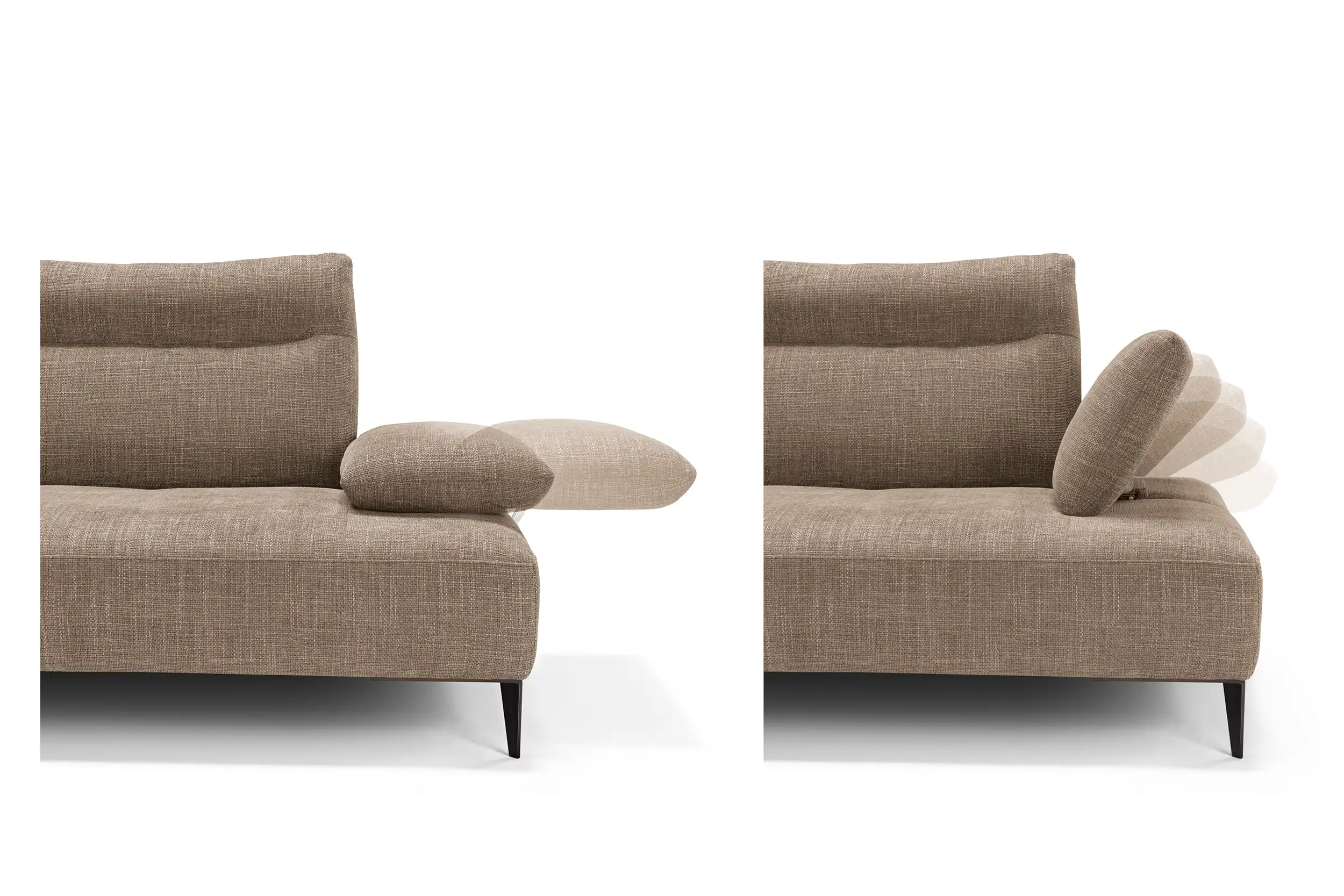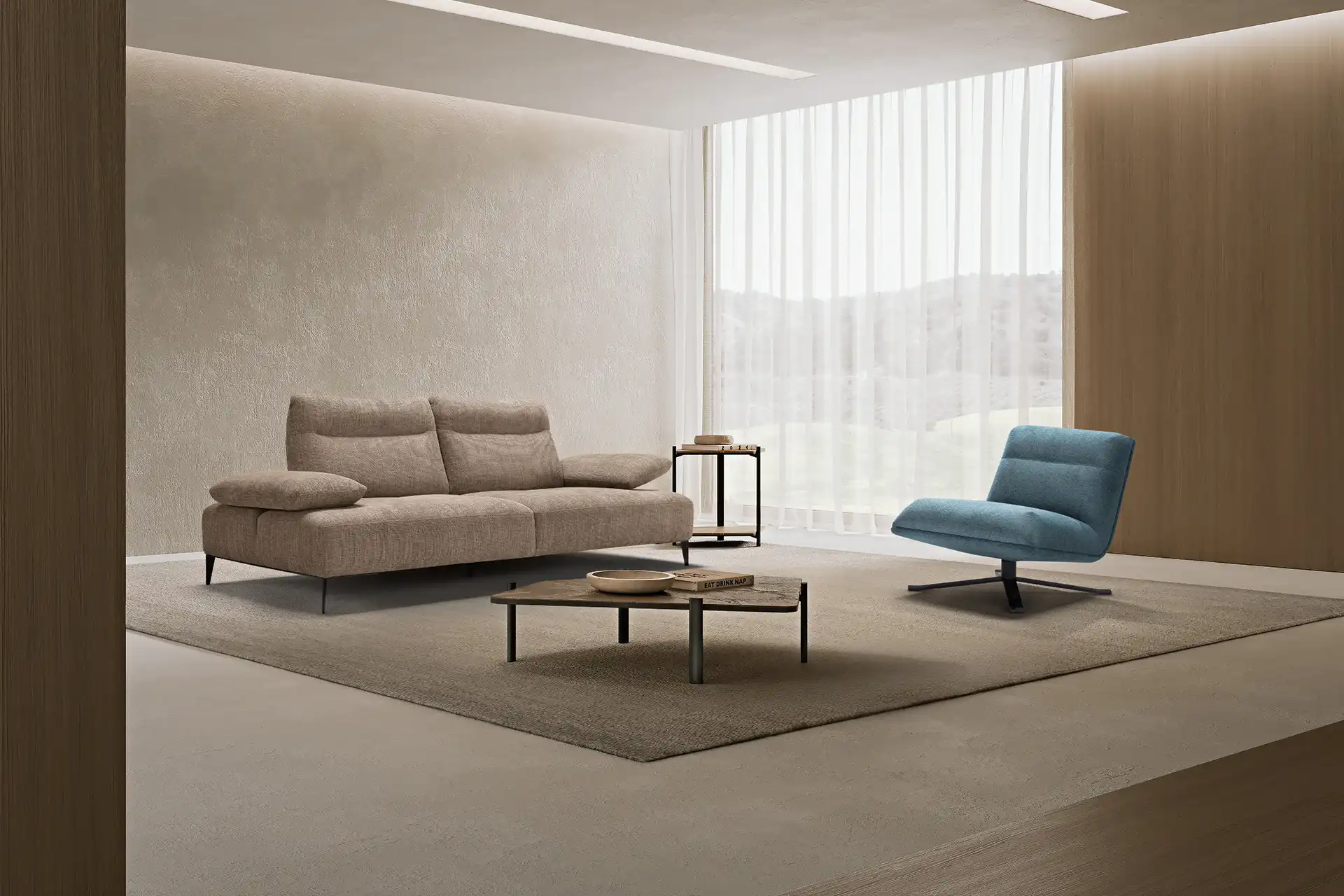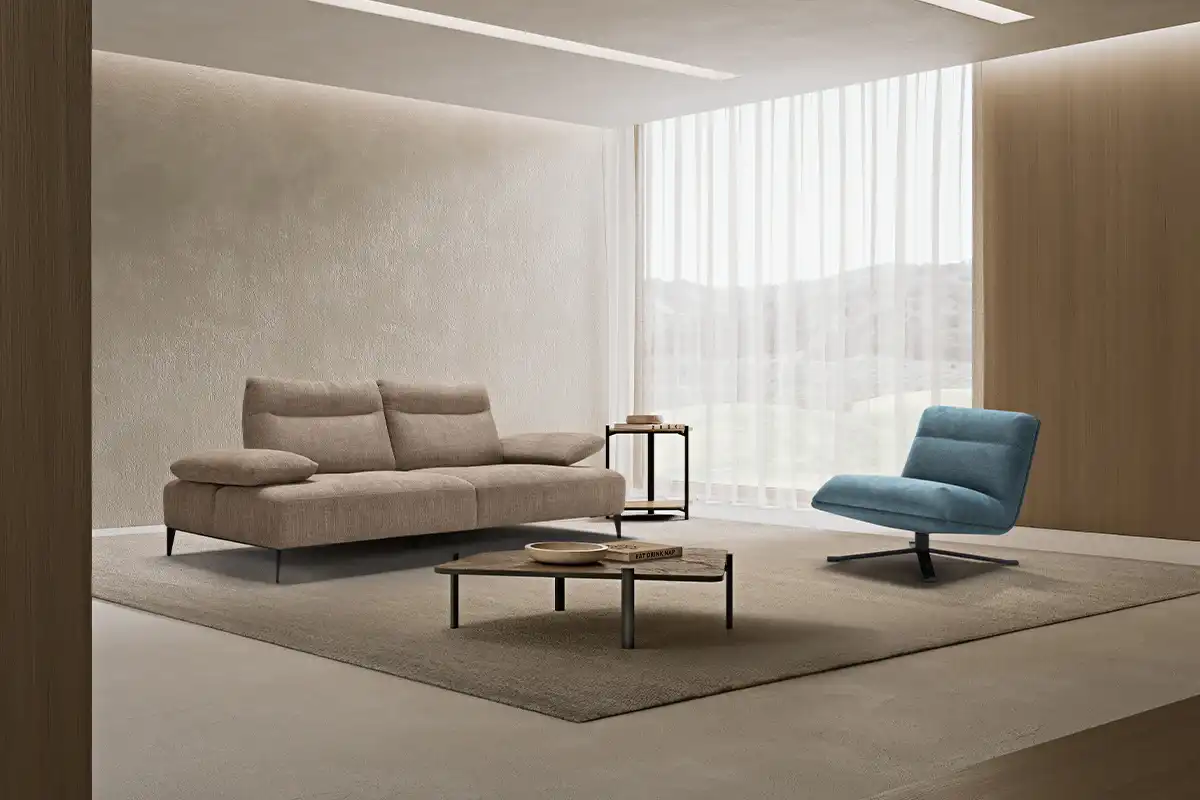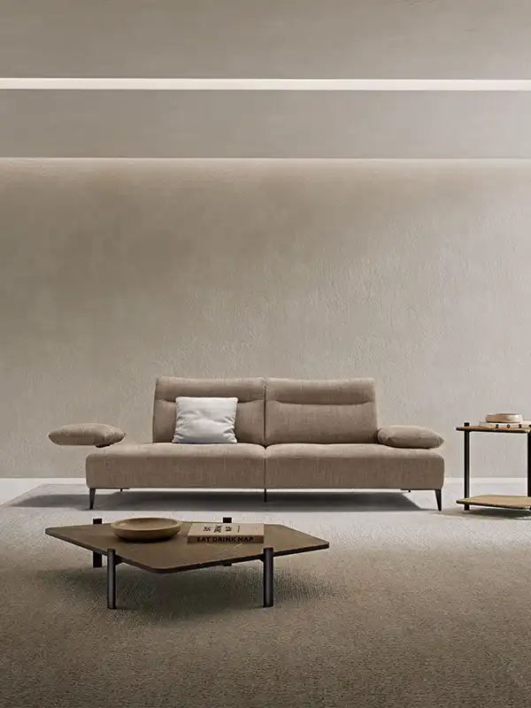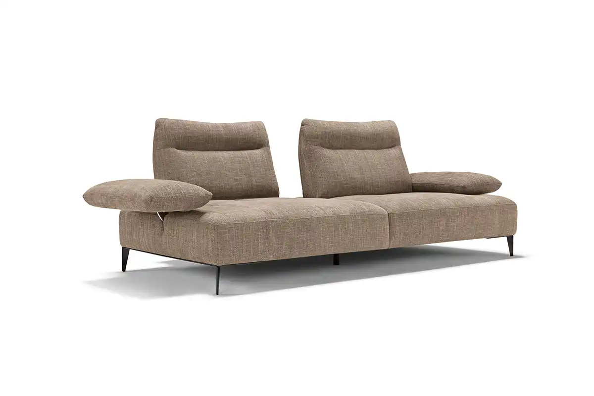 Wender è il divano che ridefinisce l’idea di comfort attraverso un sistema progettuale evoluto. Grazie alle spalliere traslanti, capaci di ampliare con un semplice gesto la profondità della seduta, e al bracciolo a doppio movimento – scorrevole lateralmente e reclinabile in più posizioni – ogni configurazione si adatta al tuo modo di vivere lo spazio. La spalliera, lavorata con un rigonfiamento ergonomico pensato per sostenere delicatamente il capo, esprime cura sartoriale e attenzione al dettaglio. A completarne l’estetica leggera, una base aperta e piedini in metallo verniciato, sottili ma solidi, che sollevano la struttura come sospesa, lasciando respirare l’ambiente.