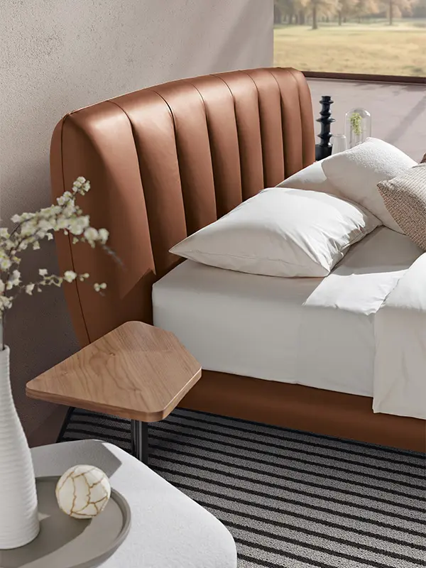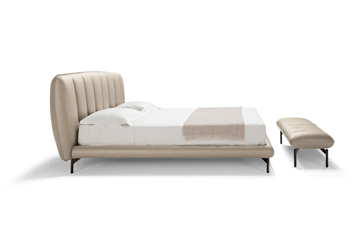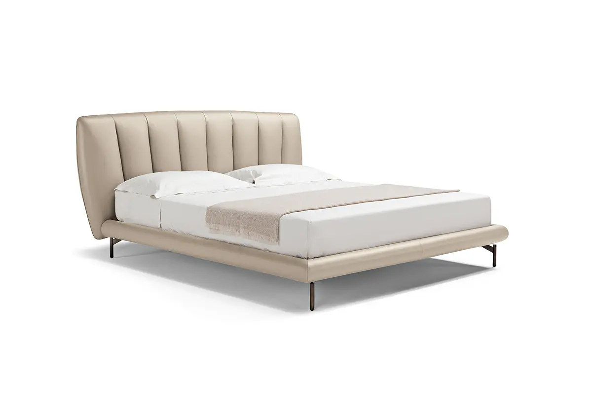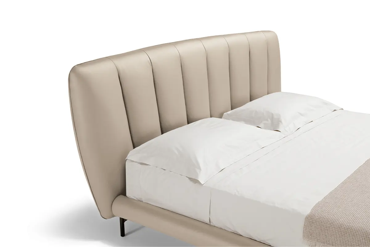 Sapiente lavorazione artigianale e dettagli raffinati definiscono lo stile inconfondibile di Perla, un letto imbottito con testiera trapuntata dalla forma a conchiglia. Un letto che prende ispirazione dalle forme naturali e si manifesta con un’estetica leggera e raffinata. I tratti sinuosi e delicatamente curvilinei della testiera abbracciano il prezioso spazio del comfort e del riposo. L’imbottitura è soffice, morbida, accogliente, caratterizzata dal gioco ritmato delle cuciture in verticale.