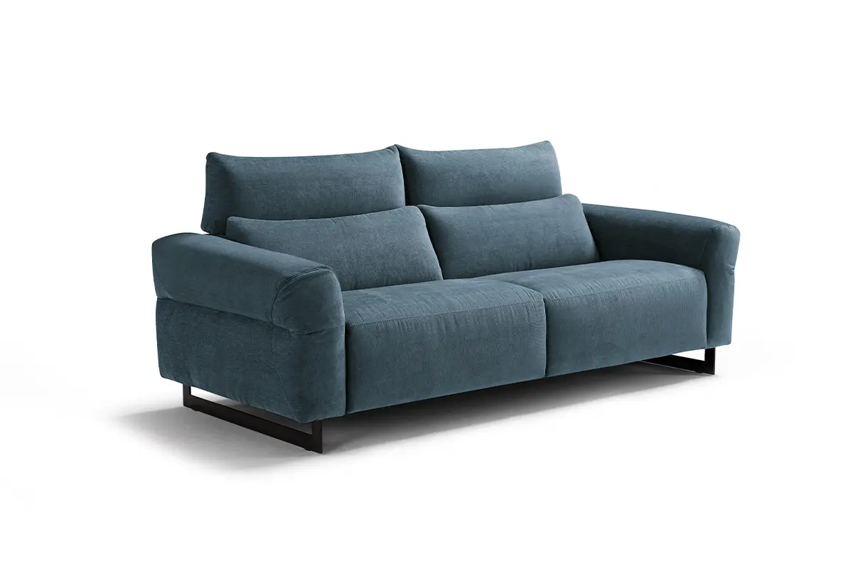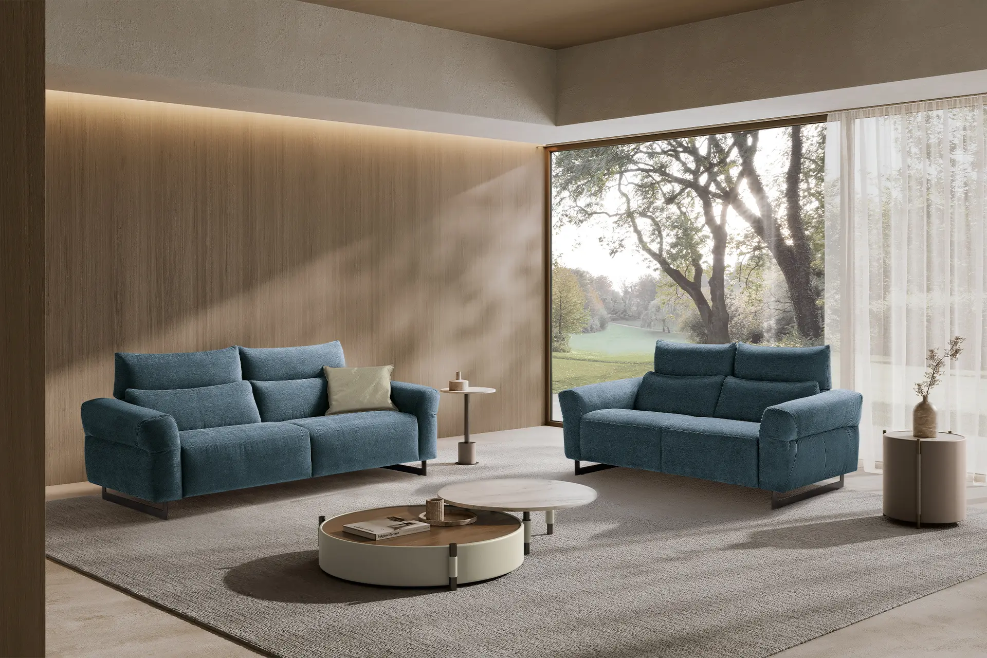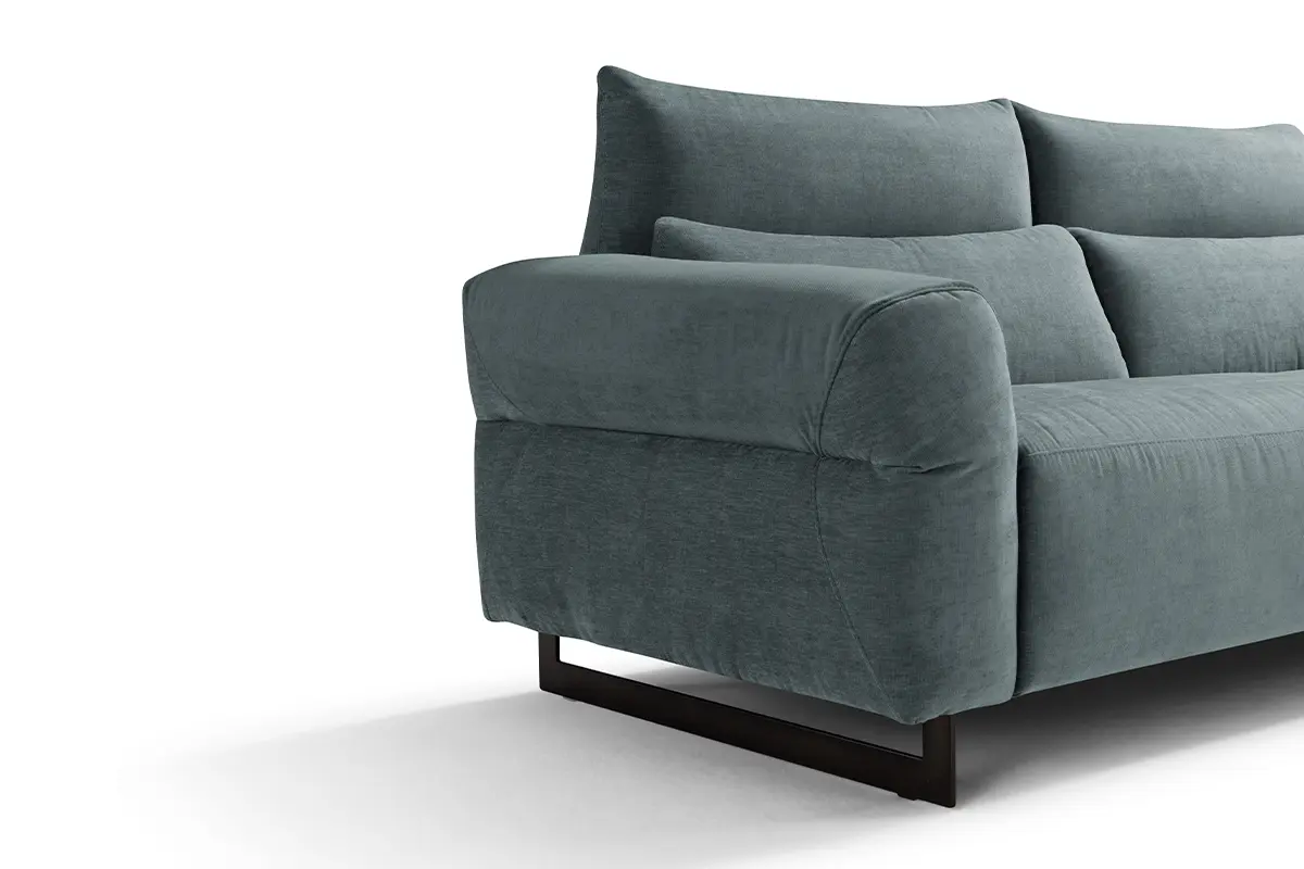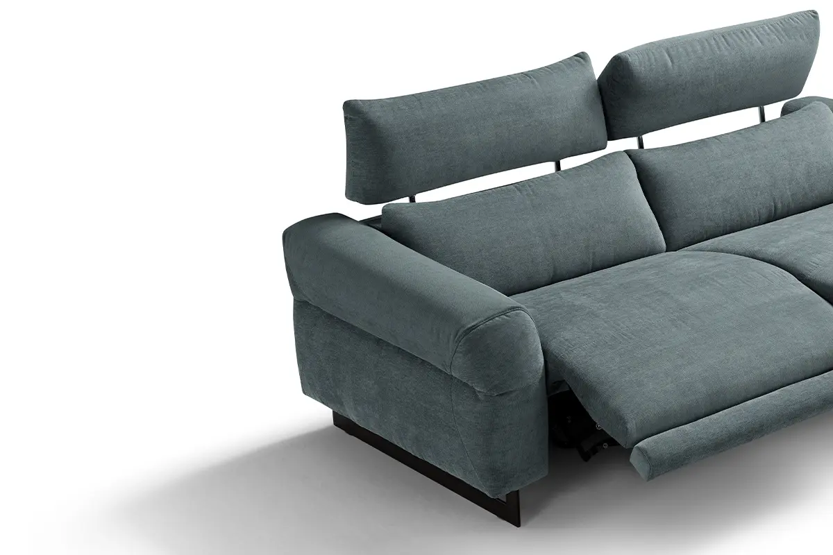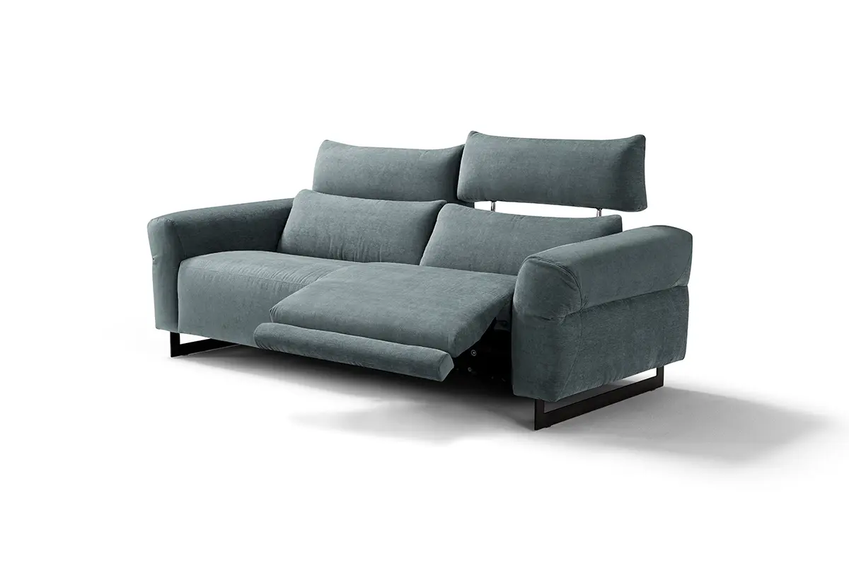 Tecnologia al servizio della migliore esperienza di relax, racchiusa in un animo soffice e accogliente: questo lo spirito del modello componibile Tender, dotato di meccanismo che consente di aprire la pediera e reclinare il poggiatesta azionando un unico pulsante elettrico. Caratterizzato nel design dai braccioli dal particolare profilo asimmetrico e poggiato su solide slitte in metallo in sei diverse finiture, questo divano è disponibile con rivestimenti in pelle o tessuto e, per un tocco di colore in più, con cuciture a contrasto.